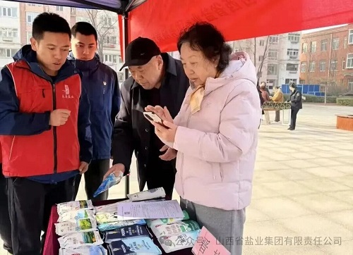 活动中,太原盐业青年志愿者积极践行志愿服务精神,向居民普及合理选择不同种类晋盐产品对预防高血压、心脑血管疾病等慢性病的重要作用,倡导的现代健康生活方式,并为70岁老年人免费赠送晋盐产品,做好群众“暖心事”,当好群众“贴心人”。