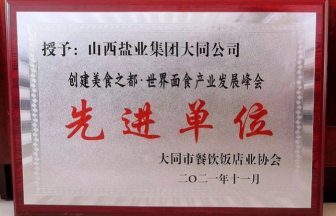 11月15日,大同市餐饮饭店业协会召开“创建文明城市、美食之都总结座谈会”,山西省盐业集团有限责任公司大同分公司获得大同市首届黄花菜品美食大赛“健康食材供应链优秀企业奖”,荣获创建美食之都·世界面食产业发展峰会先进单位称号。
