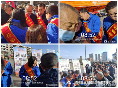 为加强食盐消费教育引导,帮助广大消费者树立食盐消费维权意识,提高自我防范能力,在2023年“3.15”消费者权益日到来之际,吕梁盐业公司积极配合市场监督管理局,在离石、孝义、临县、柳林四个地点同时开展“提振消费信心”为主题的食盐宣传活动。