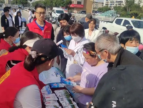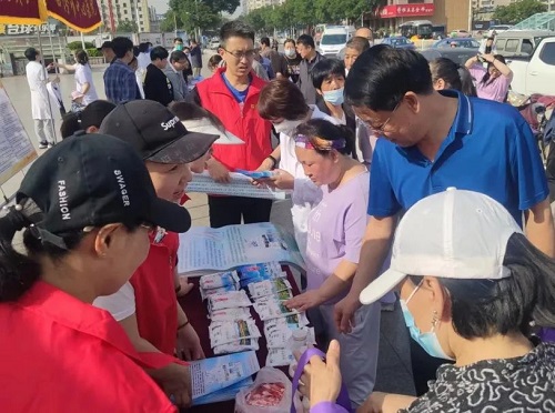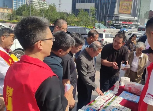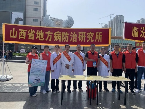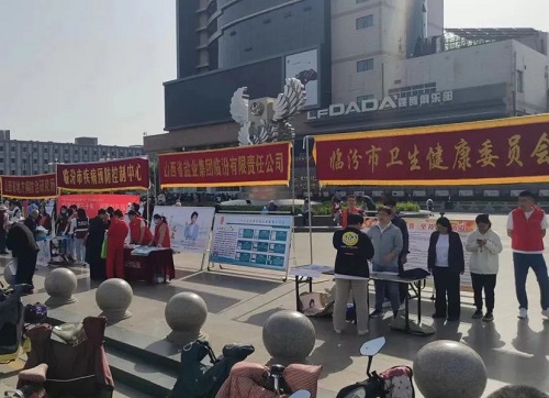 “5.15”当天,我公司领导带队,与省地病所、市卫健委、疾控中心、人民医院、中心医院、职业技术学院第一附属医院及尧都区卫体局、疾控中心等部门,共同在市平阳广场开展了主题活动,并在现场设置了门旗、宣传桌椅、宣传横幅、宣传海报、宣传资料及“晋盐”产品等相关物品。市卫健委党组成员、副主任王韶辉等领导亲临现场指导,站台助阵活动进行。侯马运销站当日也在当地开展了活动。