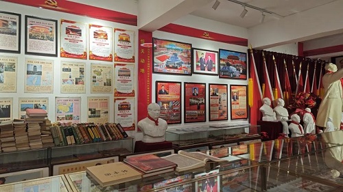 通过实物、图片、文献等展品,我们怀着十分敬仰的心情和渴盼的目光,深深地品鉴着伟人毛泽东主席的系列“红宝书”、经典语录和精彩图文,望着毛主席他老人家从少年到老年的一幅幅珍贵照片、浏览着马恩斯列、中共建国初期的“七大常委”和十大元帅的照片,我们陷入了深深的沉思,桌子上、袋子里还装着未能陈列展出的贺占望先生从全国各地收集、甚至高价“淘回”来的一摞摞珍品、古籍;如此等等让我们颇感震撼、令人敬佩;当今时代,当我们每个人在经历了世事沧桑、社会暴打、矛盾困惑等后,历史和现实反复证明:毛主席至少要比我们“早看一百年”!